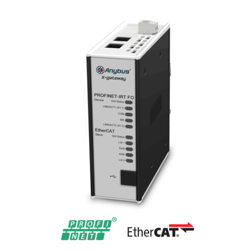 Anybus X-gateway – EtherCAT Slave - PROFINET-IRT FO DeviceThe Anybus X-gateway allows you to seamlessly inter-connect PLC control systems and their connected devices between EtherCAT and PROFINET-IRT Fiber Optic networks.