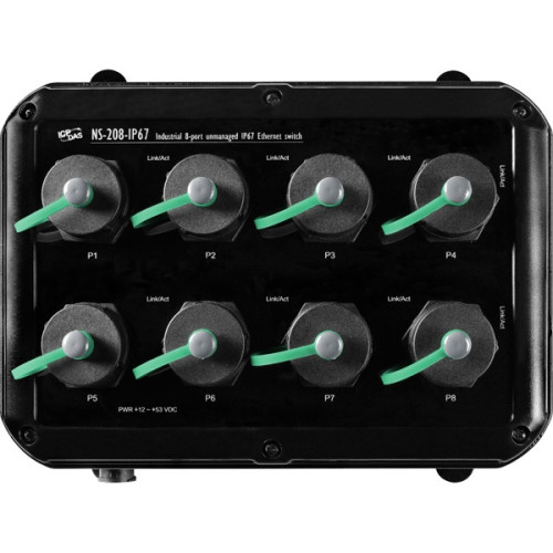 8-port M12 Unmanaged Ethernet Switch with IP67 (RoHS)Includes M12D-4P-IP68 x 8, A-CAP-M12M x 8, M12A-5P-IP68 and A-CAP-M12F x 1
